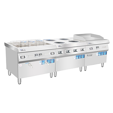安徽厨房设备之电磁油炸炉+四头凹炉+铁板烧的优点: