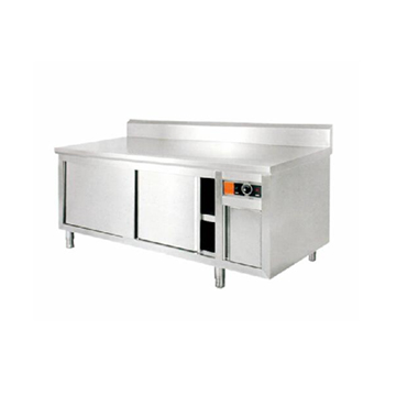由凹形槽和与该凹形槽相对应的呈倒凹形的带孔层板所围绕形成热风通道可有效引导热风进入柜体,一方面,热风通过凹形槽从下部进入柜体,另一方面,热风由凹形槽和柜体内底部形成的空腔进入到中空双层推拉门中,再从中空双层推拉门的内层板上的第二内通风孔中从侧部进入柜体,实现对餐盘的均匀加热,安徽金皖西商用厨房设备厂可定做!