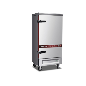 蒸饭车又称蒸饭柜、蒸饭机或蒸饭箱。是指利用电、燃气发热,蒸煮米饭的大型厨房烘烤设备。内部采用不锈钢蒸盘(不锈钢方盘)作为容器,为了方便移动,在设备下方安装有万向轮,故外形似车。车身为柜体状,材质为不锈钢所,一般多用304不锈钢制造。蒸饭车多用于酒店、部队、学校工厂等大型食堂。蒸饭车除了用来蒸米饭、馒头、包子以外,还可蒸猪肉、鸡鸭等肉食,还有专门用来蒸海鲜的海鲜蒸柜,也可以炖汤。